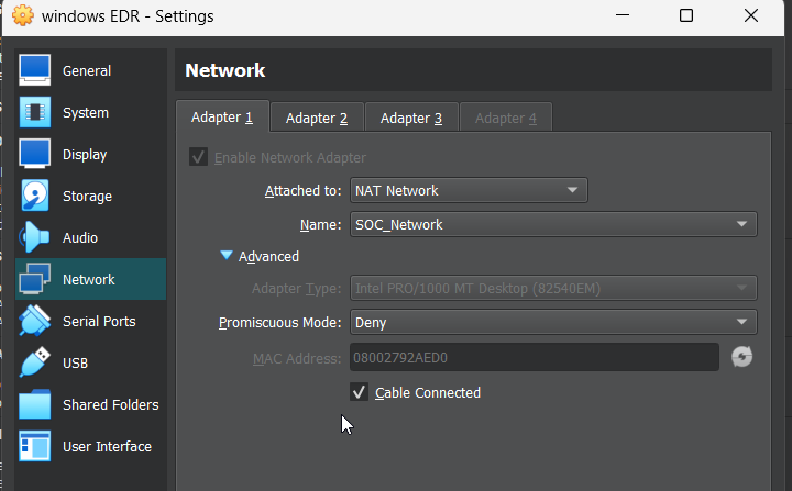 Adapter 1 — NAT Network