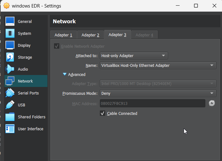Adapter 3 — Host-Only Network