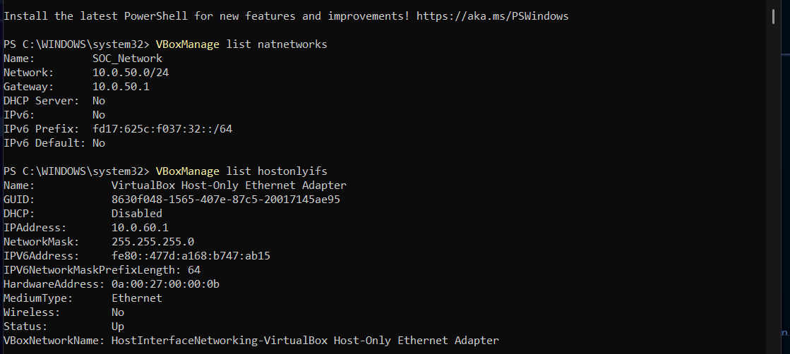 Step 1.1: Creating the NAT Network (Internet & Management)