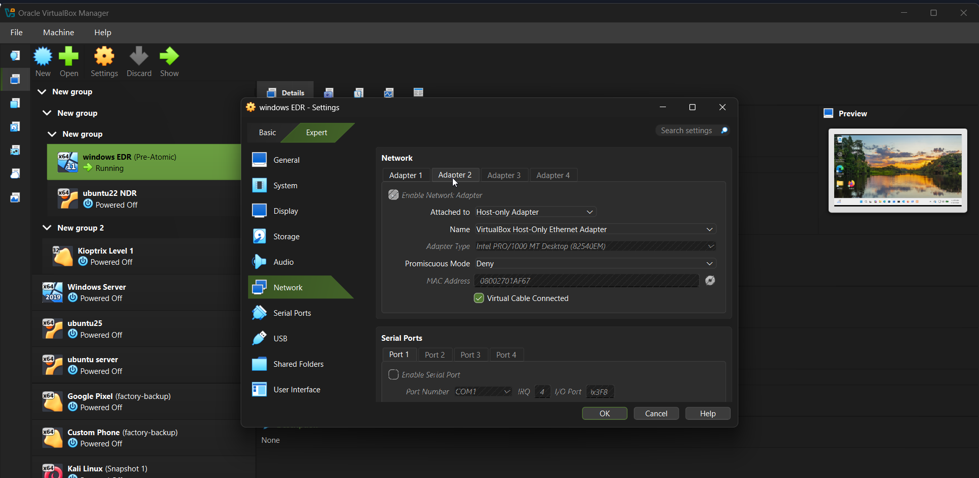 Security Implication: VirtualBox installs several virtual network adapters on your host. These are safe but will appear in your network connections. Note them — I configured them shortly after.