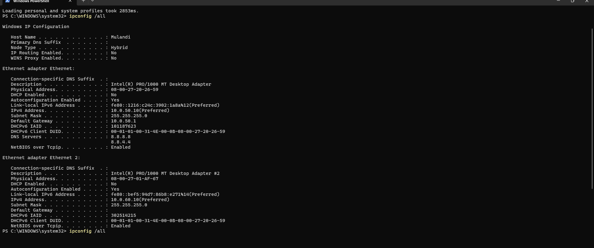 - Host-only + NAT provides the right balance of isolation and internet access