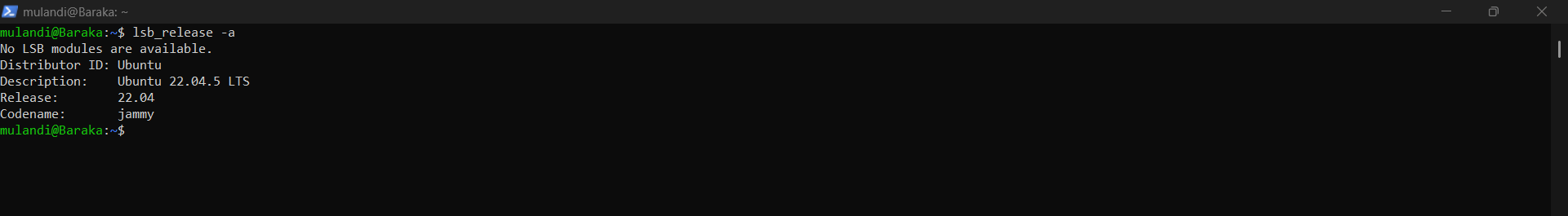 WSL2 Ubuntu terminal showing successful installation with Ubuntu version information